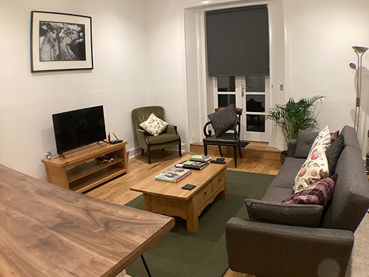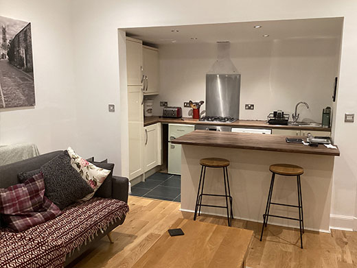 This luxury one bedroom boutique apartment is situated in a UNESCO World Heritage Site, which contains the largest collection of Georgian property in the UK. The accommodation is suitable for 2 adults only, and is available for short term stays. In keeping with our small collection of holiday let properties, this apartment is in "just the best location" in the heart of Stockbridge in Edinburgh. This is an ideal base for a city break in Edinburgh. The apartment comprises a living room with open-plan kitchen, bedroom with super-king size bed and a bathroom with shower and small bathtub. The apartment has its own private main door and is a lower ground basement flat.