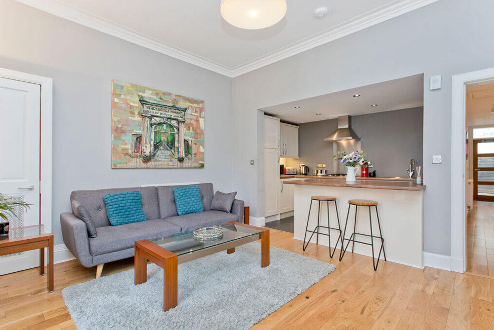 This is an ideal base for a city break in Edinburgh. The apartment comprises a living room with open-plan kitchen, bedroom with super-king size bed and a bathroom with shower and small bathtub. The apartment has its own private main door and is a lower ground basement flat. There is no garden or outside space.
