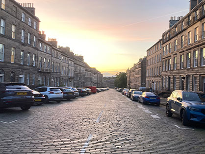 Clarence Street is 15 minutes walk from Princes Street, where you can catch a tram to the airport within 45 minutes, so one hour door to door on public transport. Bus no 23 and 27 from Dundas Street (5 min walk) to up via Princes Street to the Royal Mile and beyond to the South side of the City. Bus no 36 from Henderson Row (2 min walk) heads up to the West End and Lothian Road up to Bruntsfield and Morningside. Download the Edinbus App for real time information on services and times.