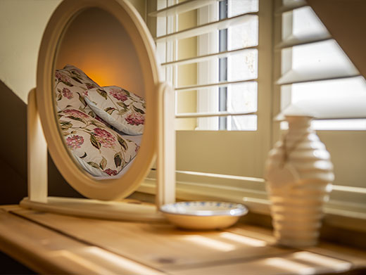 Fountain Cross Cottage has one lovely bedroom, accessed via a steep staircase, with one double bed. It is not set up to accommodate additional guests including children. Due to the location of the bathroom and the steep gradient of the staircase, the cottage is not suited to those with mobility limitations.