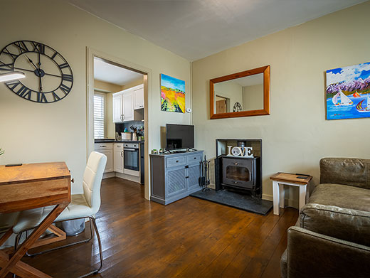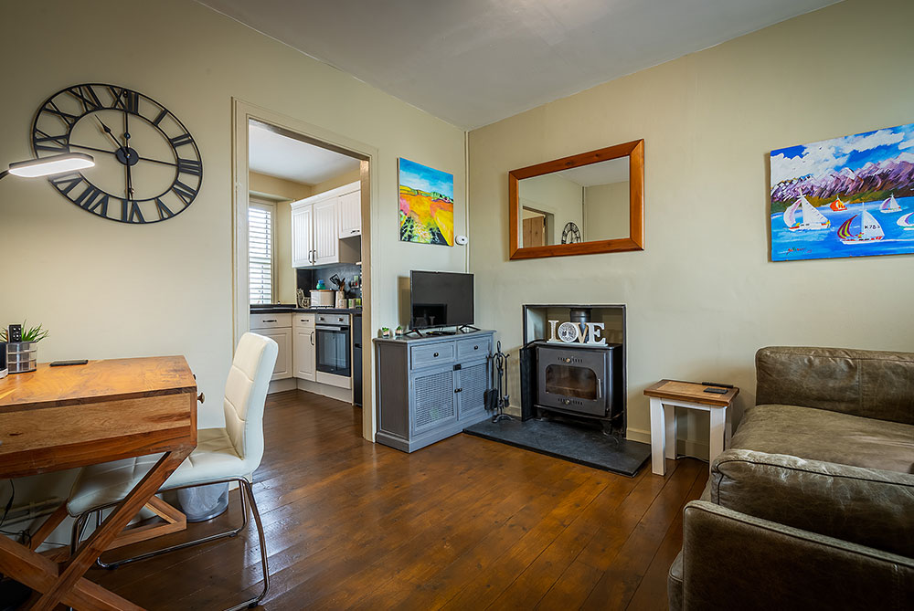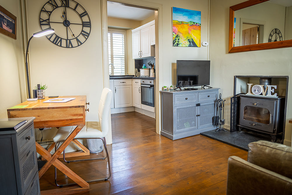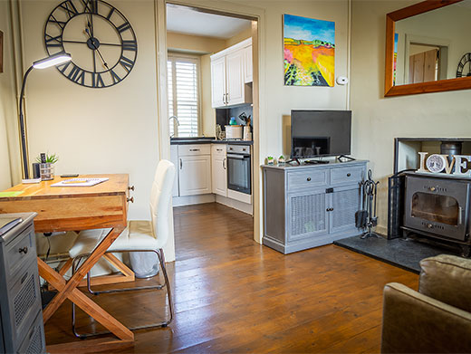 Benefiting from renovations and refurbishment in 2024, the cottage has a new central heating system, bathroom and decoration throughout. Open the cottage door into the hallway followed by a feature stable door leading into the living room with cosy wood burner. The adjoining kitchen is accessed from the living room through another stable door, and is well-equipped with modern built-in units for plentiful storage and dining for two.