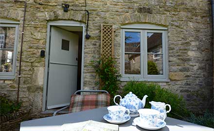The sitting room is furnished with a comfortable sofa, just the spot to curl up and read a book or watch a film. To the side is the kitchen, which has been cleverly designed to incorporate all you'll need to cook up a feast. A table for two sits under the window that looks into the private garden. The tower of St Edward's Church rises behind and is well worth the short walk to see its North/West door, framed by two ancient yew trees, which feature in many famous photographs.